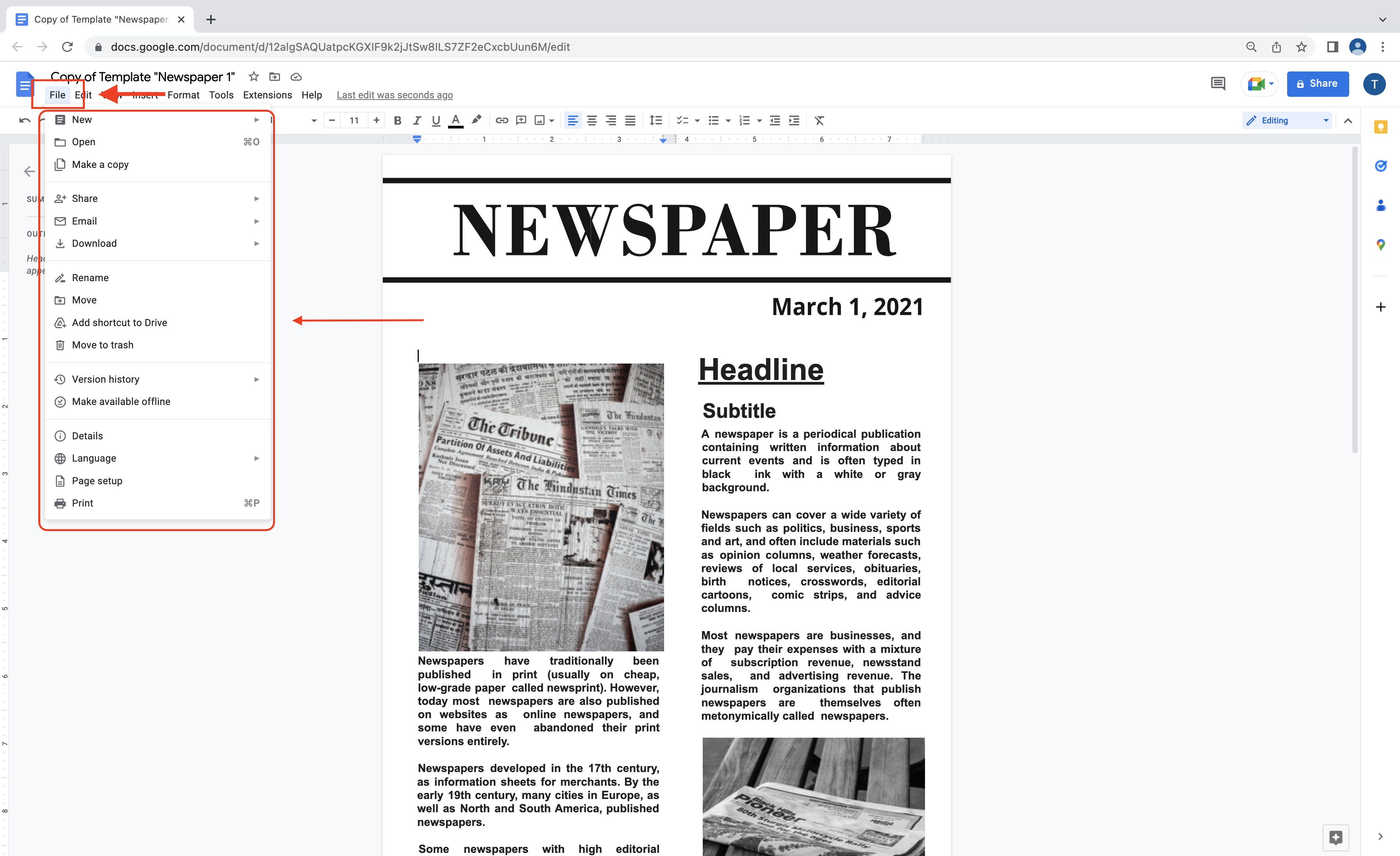 1. Abre un documento de Google Docs