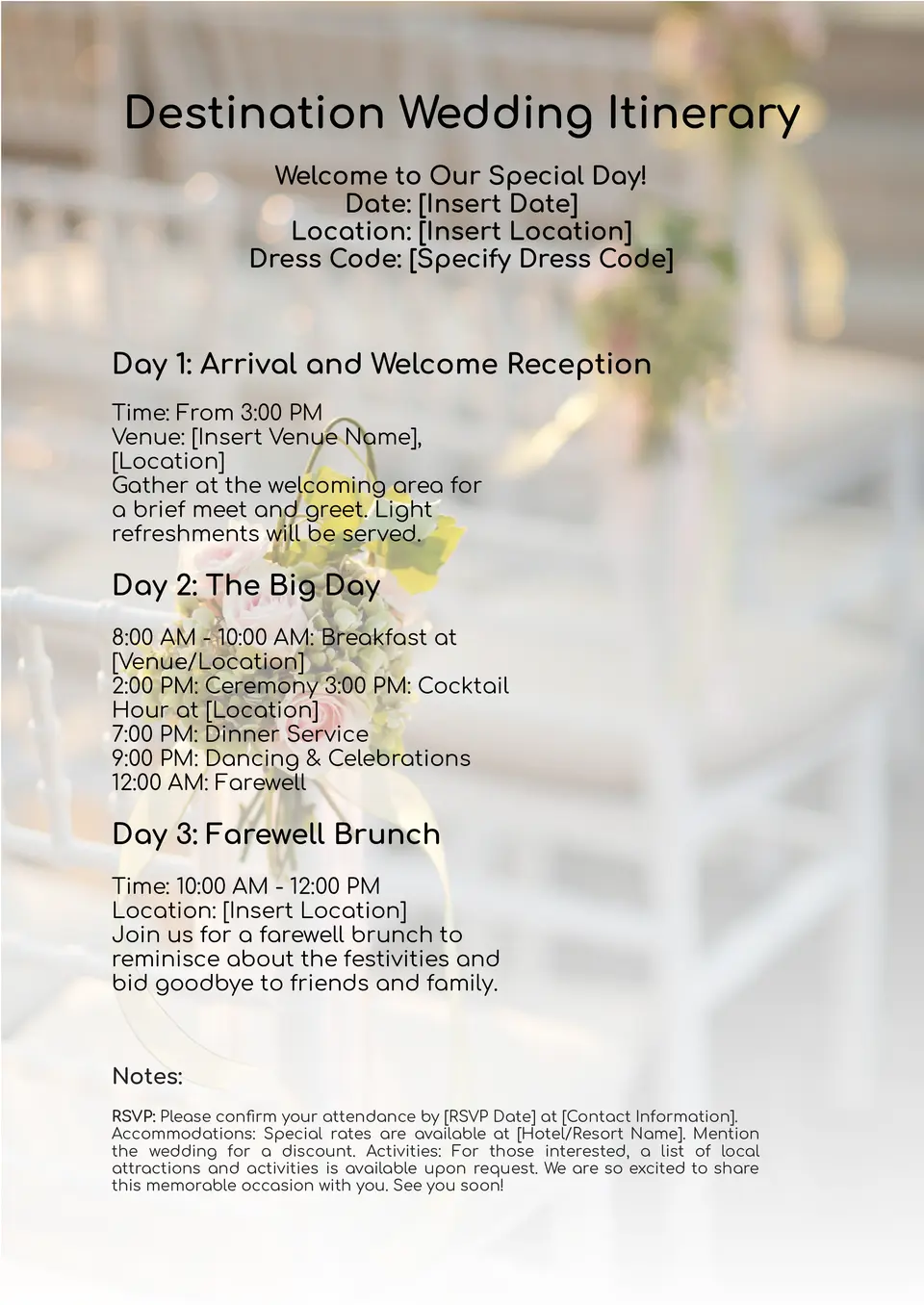 Plantilla de Itinerario para Boda de destino