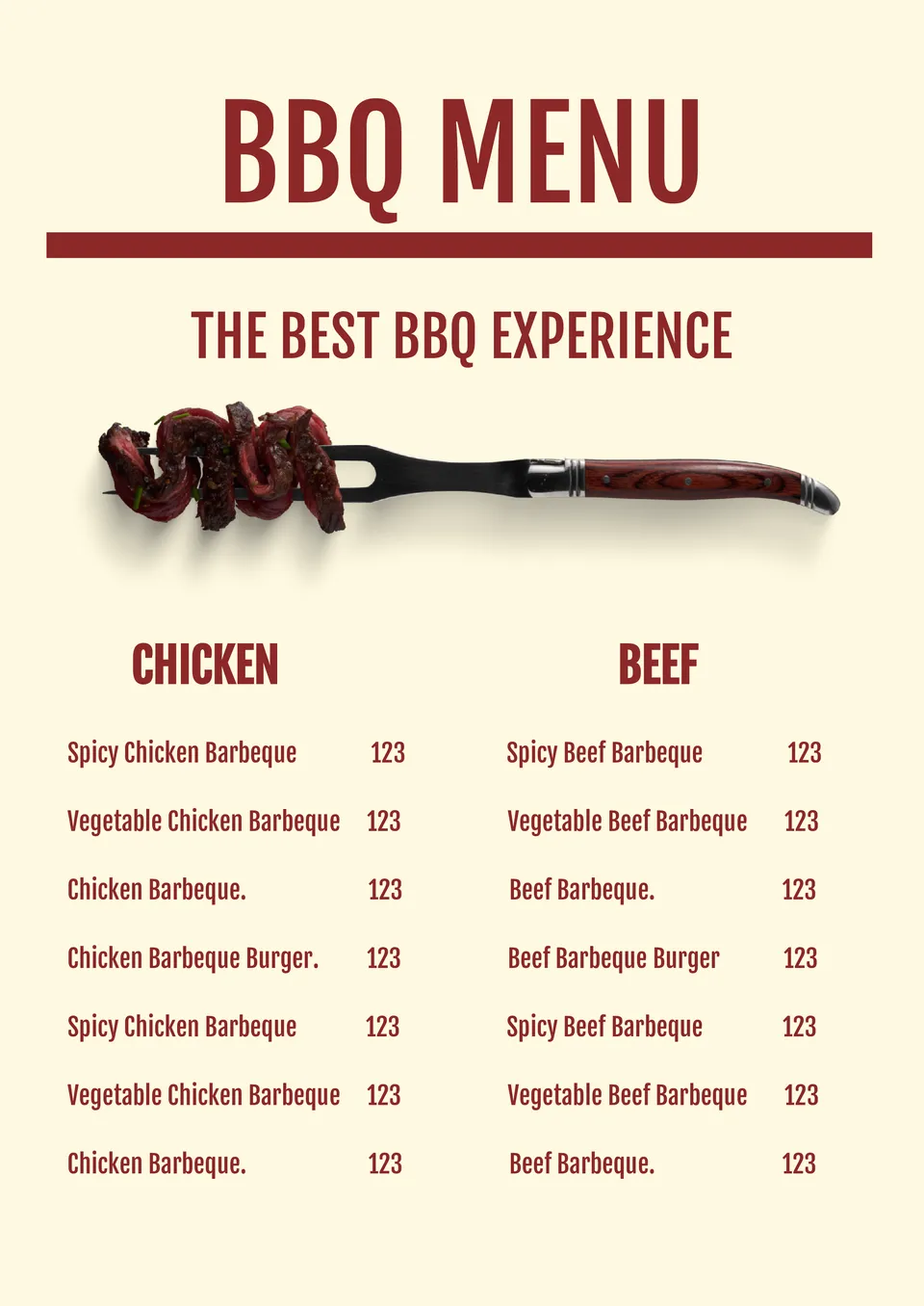 Plantilla de Menú de BBQ