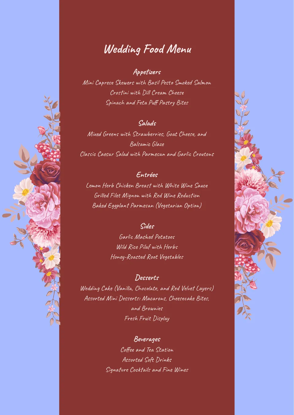 Plantilla de Menú de Comida para Bodas