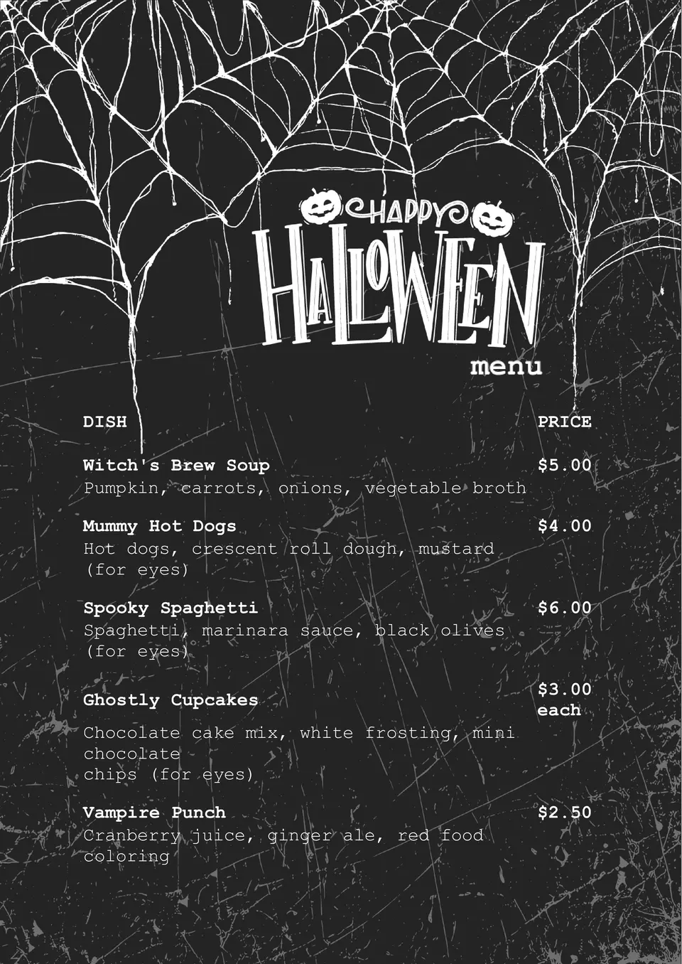 Plantilla de Menú de Halloween