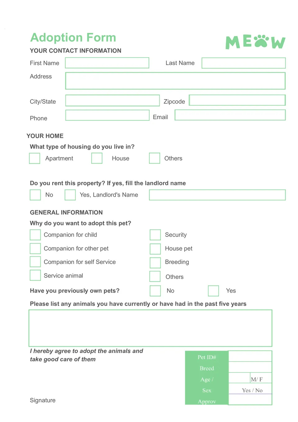 Plantilla de Solicitud de Adopción de Gatos