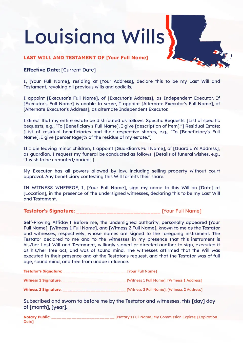 Plantilla de Testamentos de Luisiana