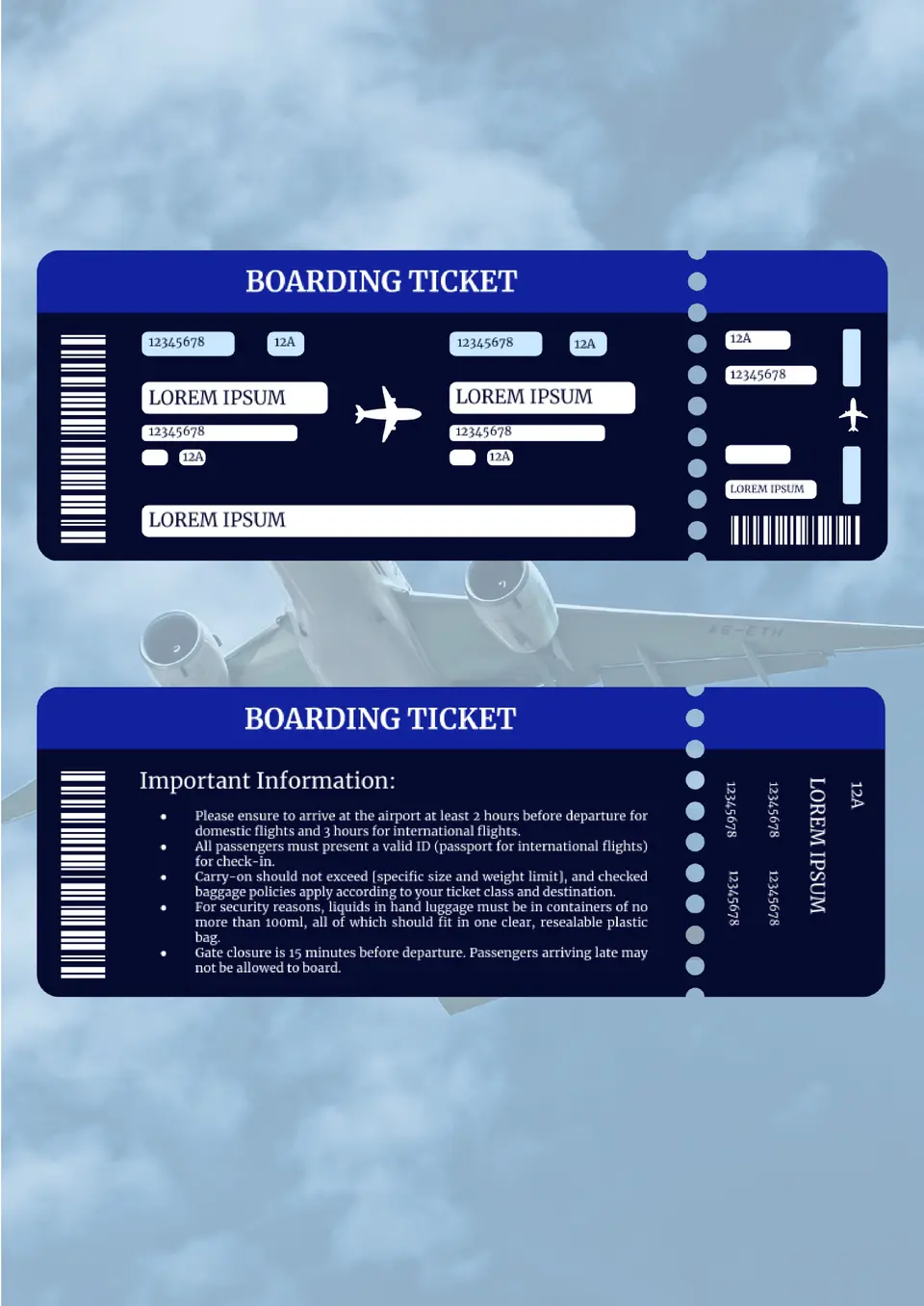 Want to add a travel-inspired touch to your next event? The Airplane Ticket Template provides a sleek and realistic design, perfect for travel-themed parties, corporate events, or even as invitations for a destination celebration. It features customizable sections for departure details, flight times, and seat numbers, making it easy to replicate the look and feel of a real airplane ticket. Ideal for creating a unique, immersive experience for your guests.