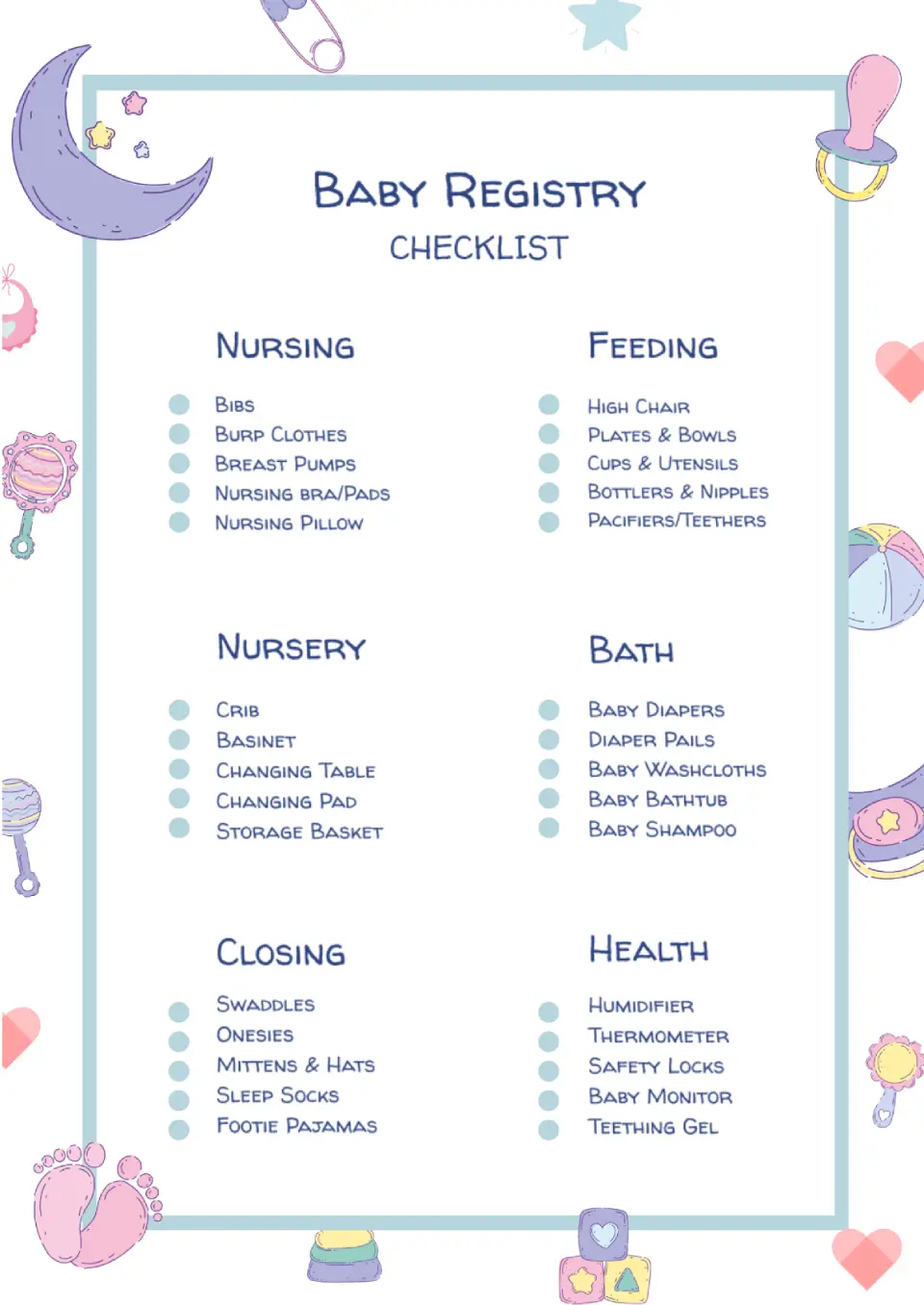 Are you expecting a baby or are you going to take a child with you on a trip? Then it is significant for you to prepare many necessary things in advance: from diapers to medicines. In order not to forget anything, use the Baby Registry Checklist Template in Google Docs. This beautiful hand-drawn design layout is divided into categories, each listing a things record.