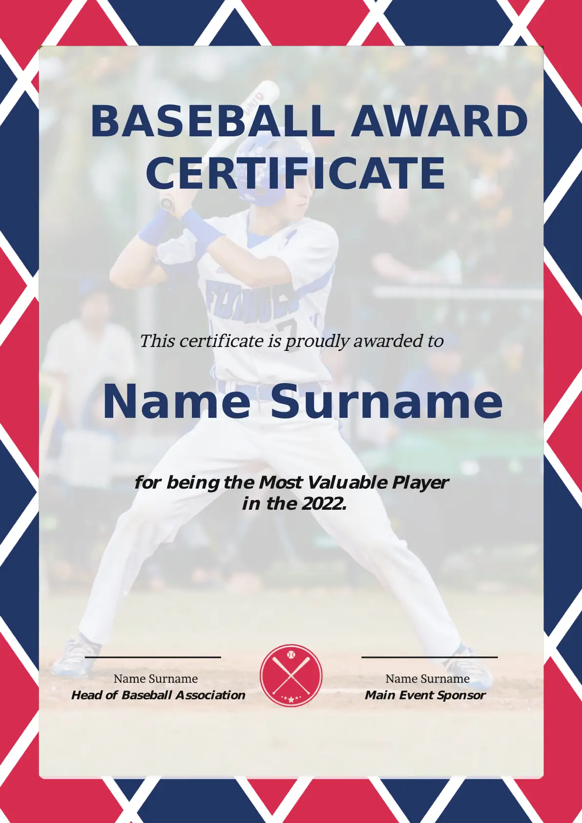 Baseball Award Certificate Design Template