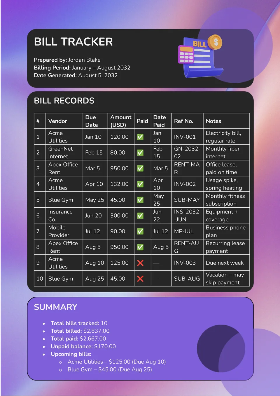 Bill Tracker Template