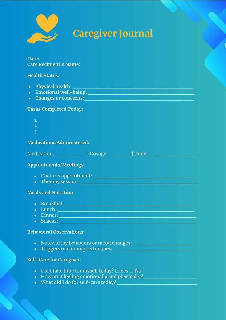 Caregiver Journal Template