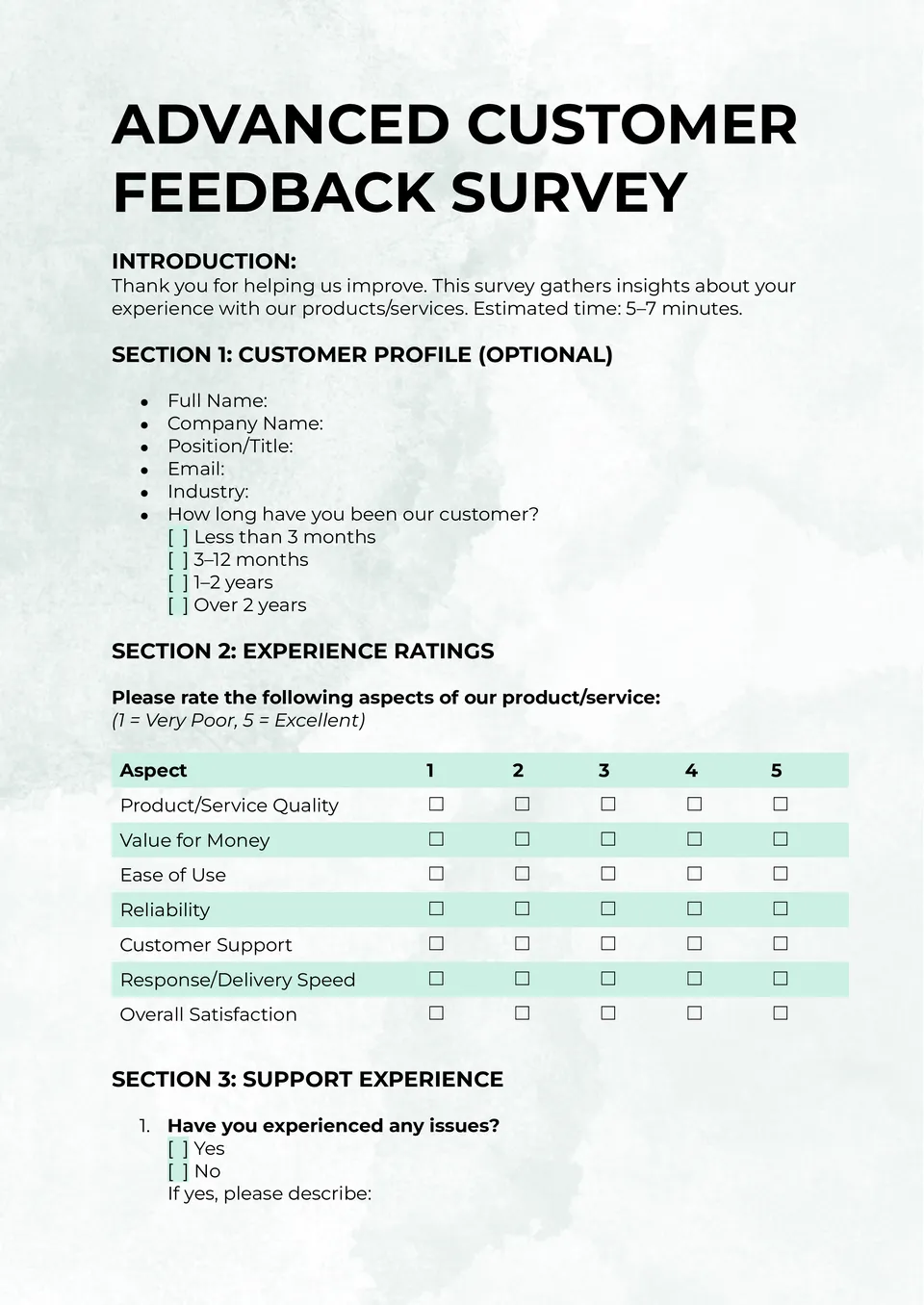 Customer Survey Template