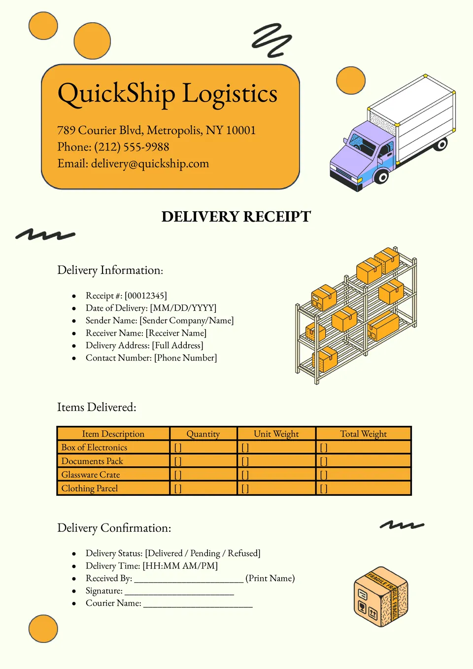Delivery Receipt Template