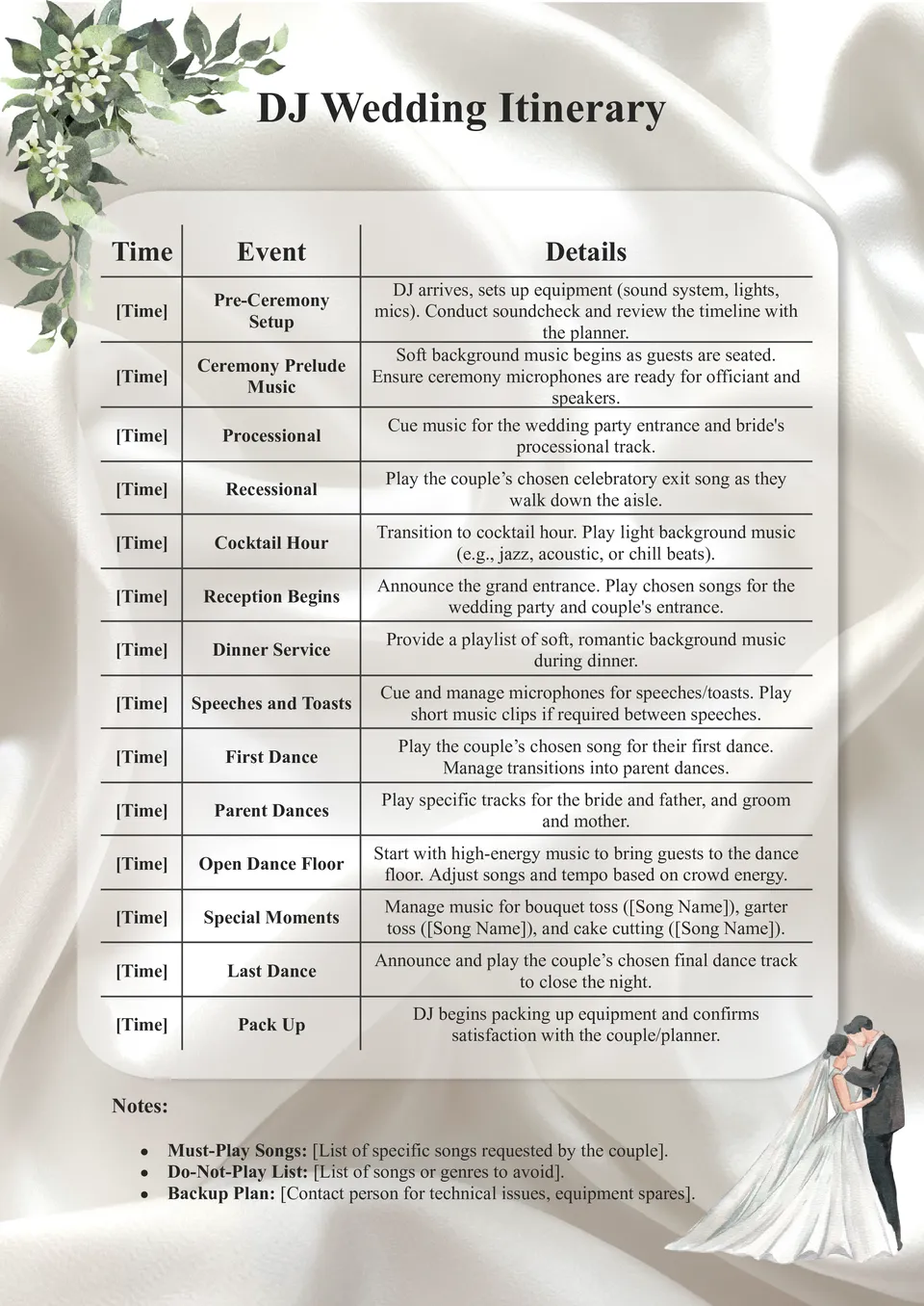 Dj Wedding Itinerary Template