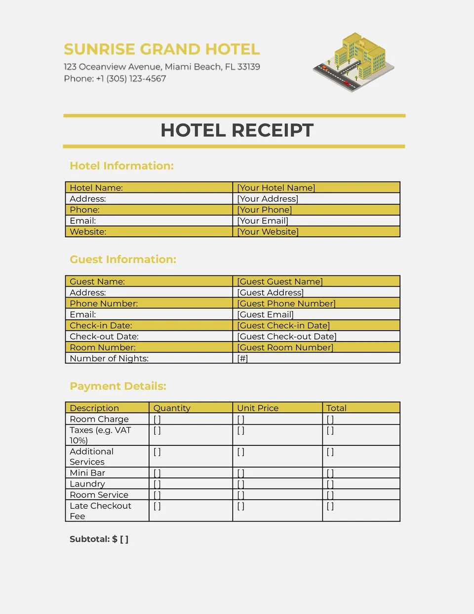 Hotel Receipt Template