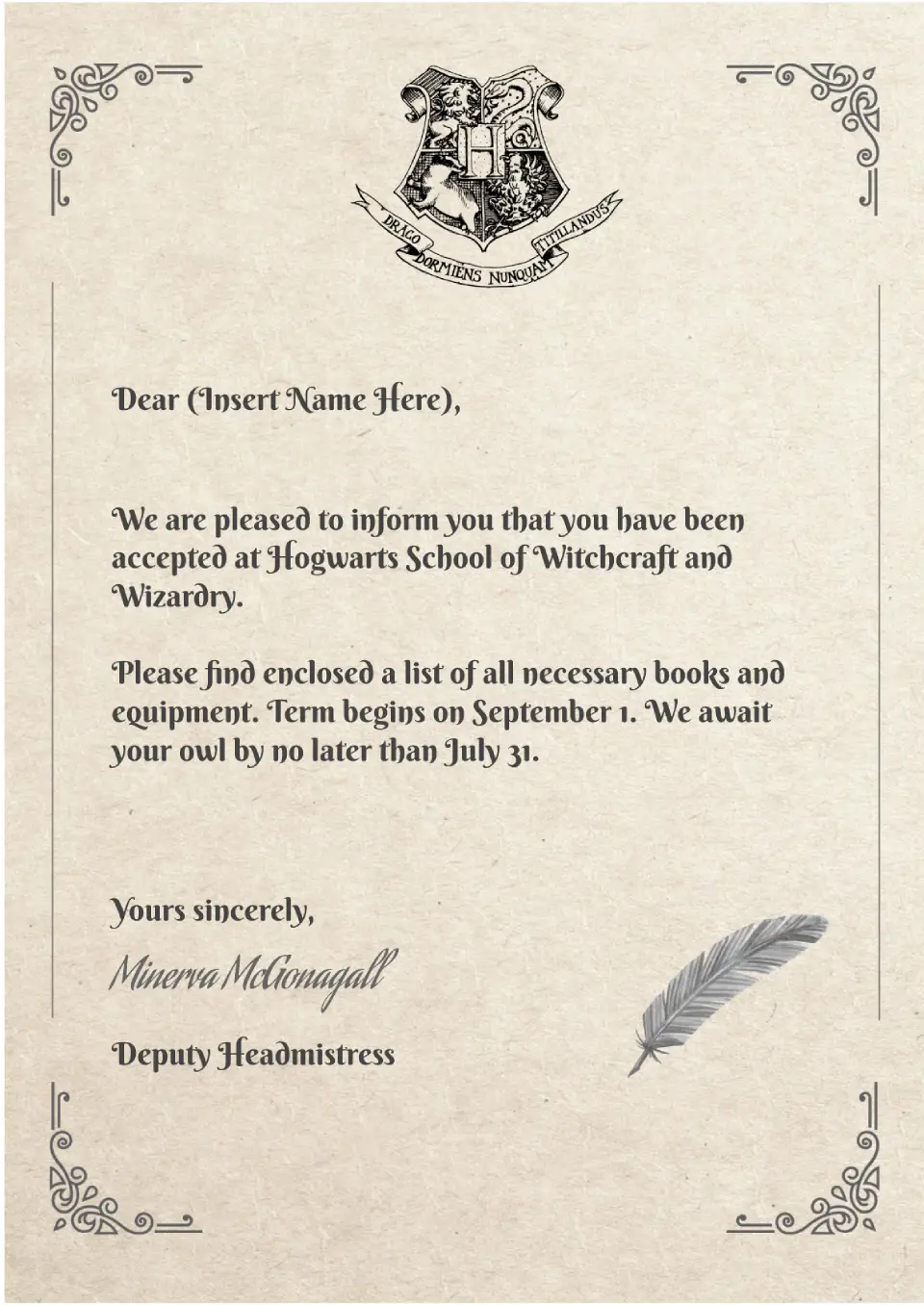 Letter From Hogwarts Template