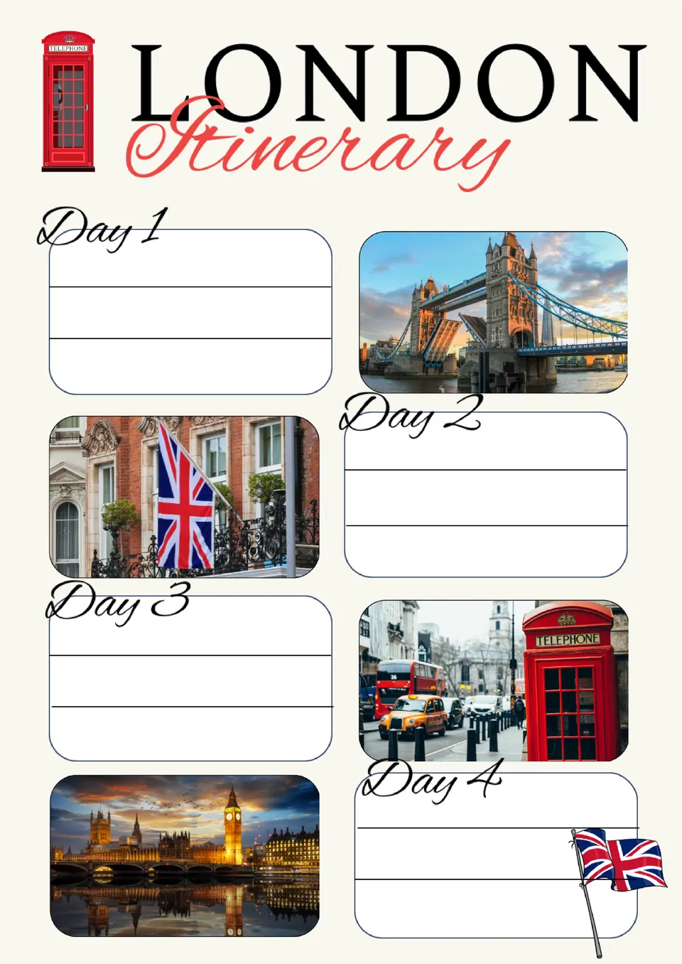 London Travel Itinerary Template