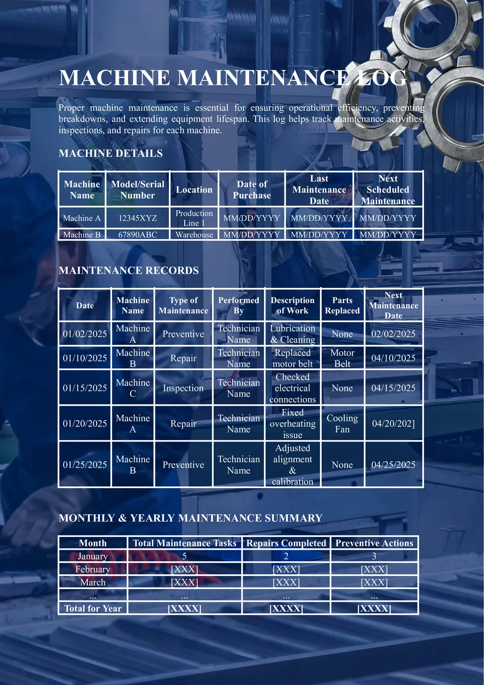 Machine Maintenance Log Template
