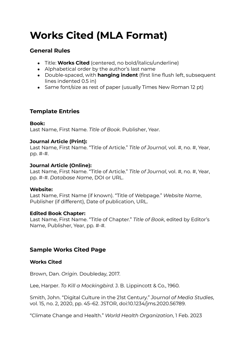 The Minimal MLA Template gives you a clean, no-frills format that adheres to MLA guidelines while keeping design simple and modern. It’s perfect for writers who want to focus on content and avoid distraction from heavy styling.