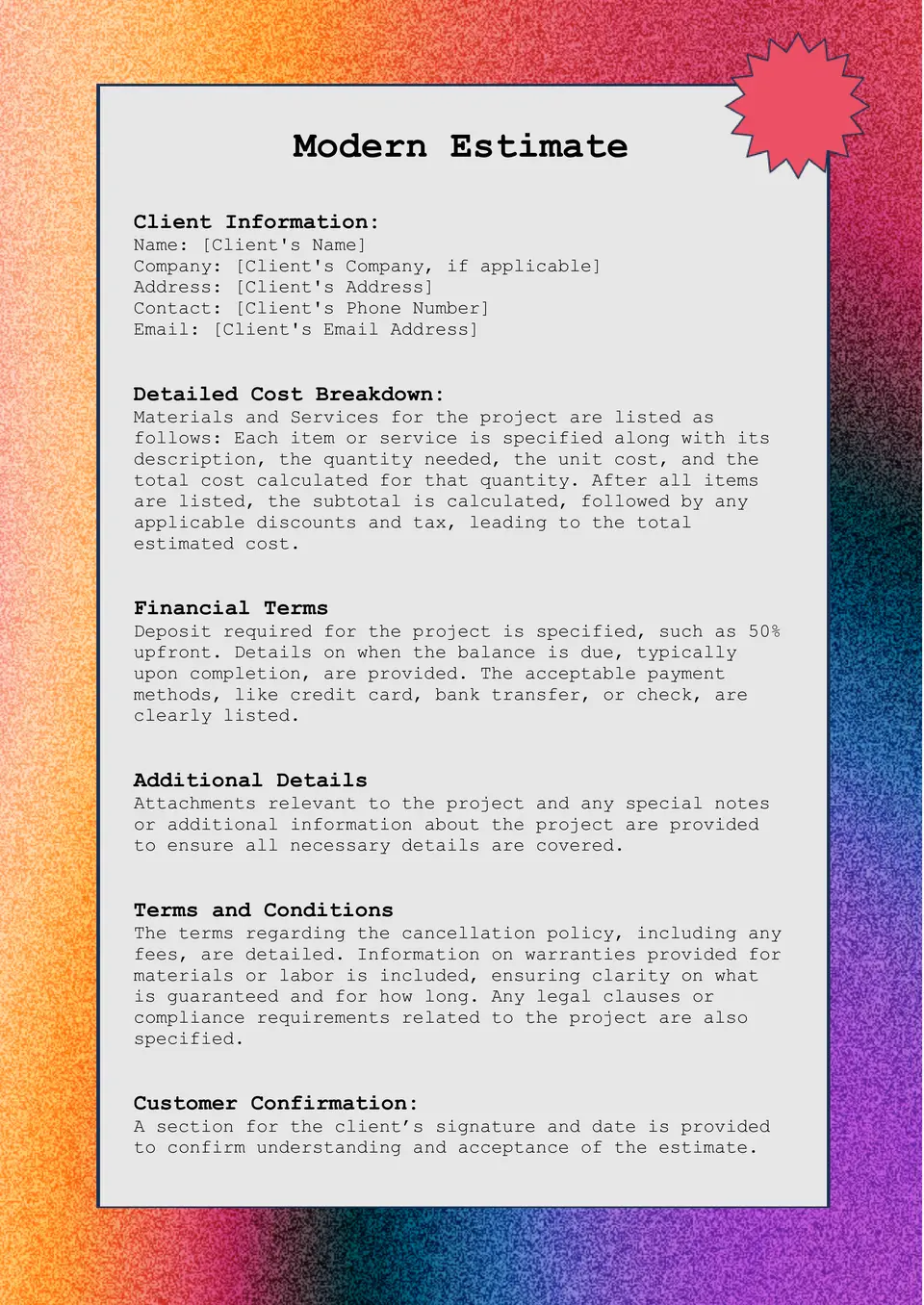 Modern Estimate Template