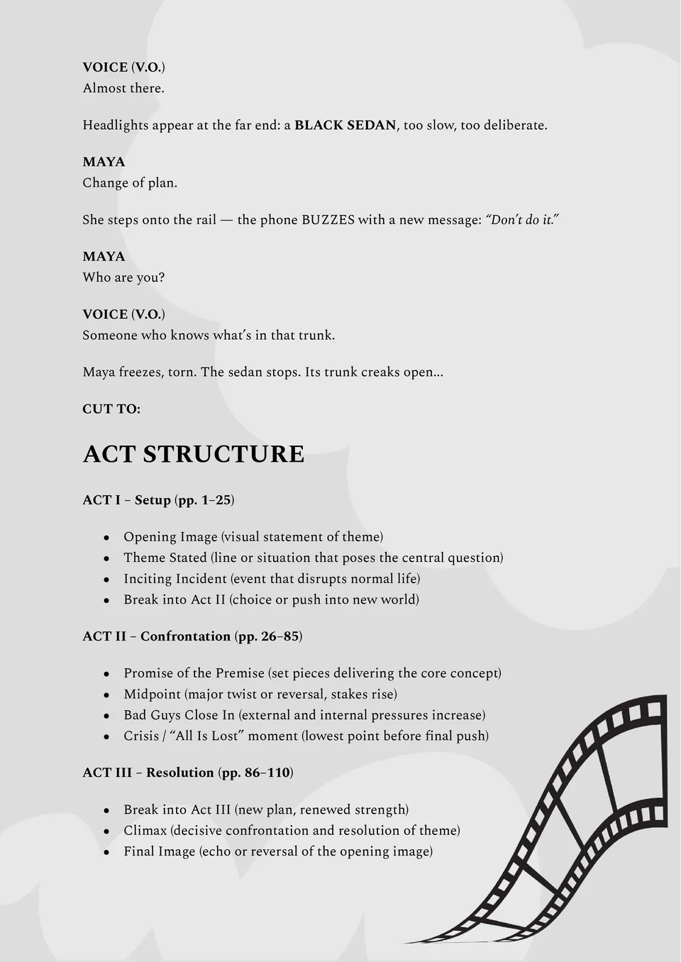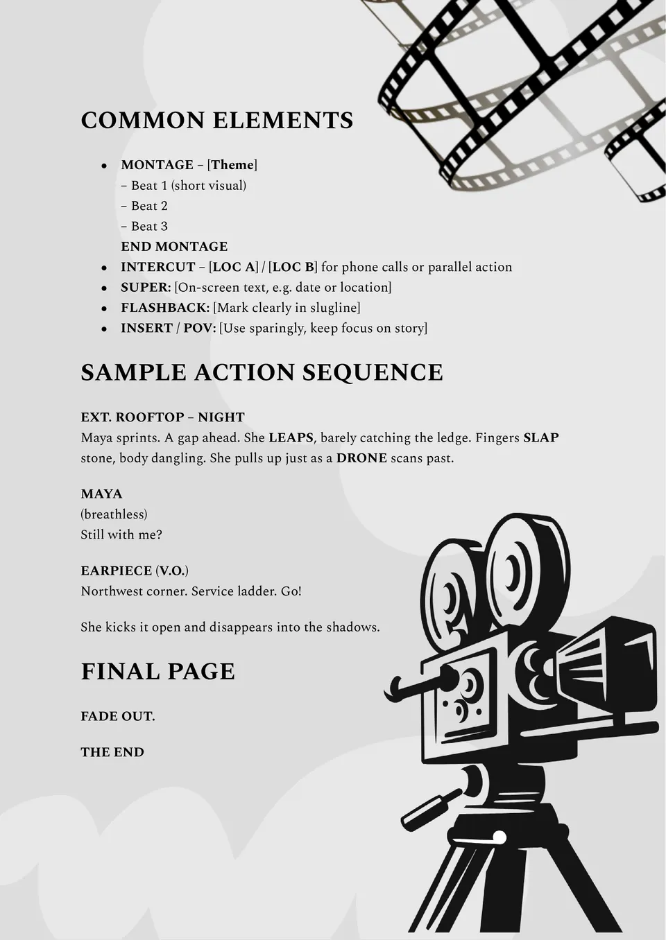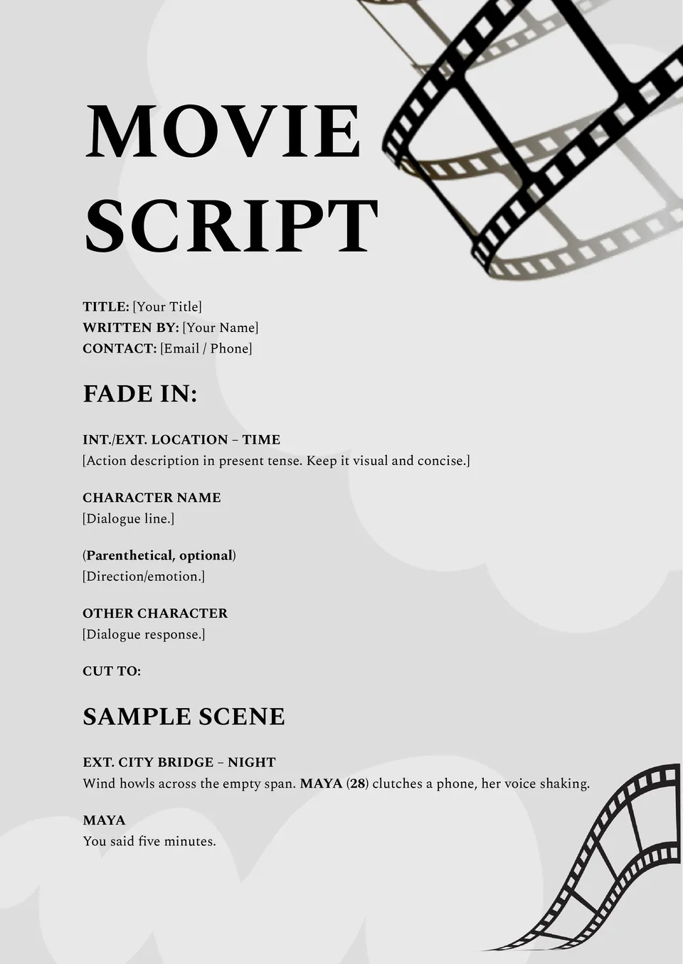 Trying to format your screenplay correctly without wasting hours? The Film Script Template provides industry-style layout for scenes, action, and dialogue.