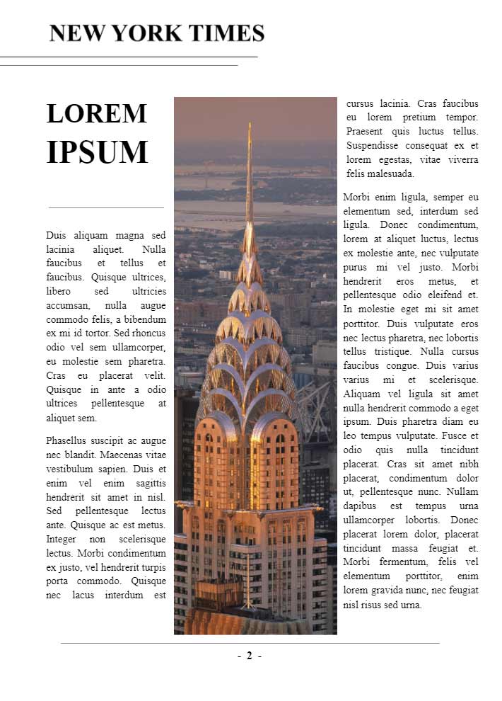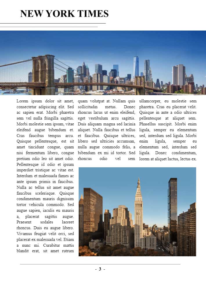 This file completely repeats the appearance of a periodical printed piece. The layout is divided into separate journalistic columns, the width of which you can change as you see fit. A headline on the first page allows you to focus on the topic of the piece.