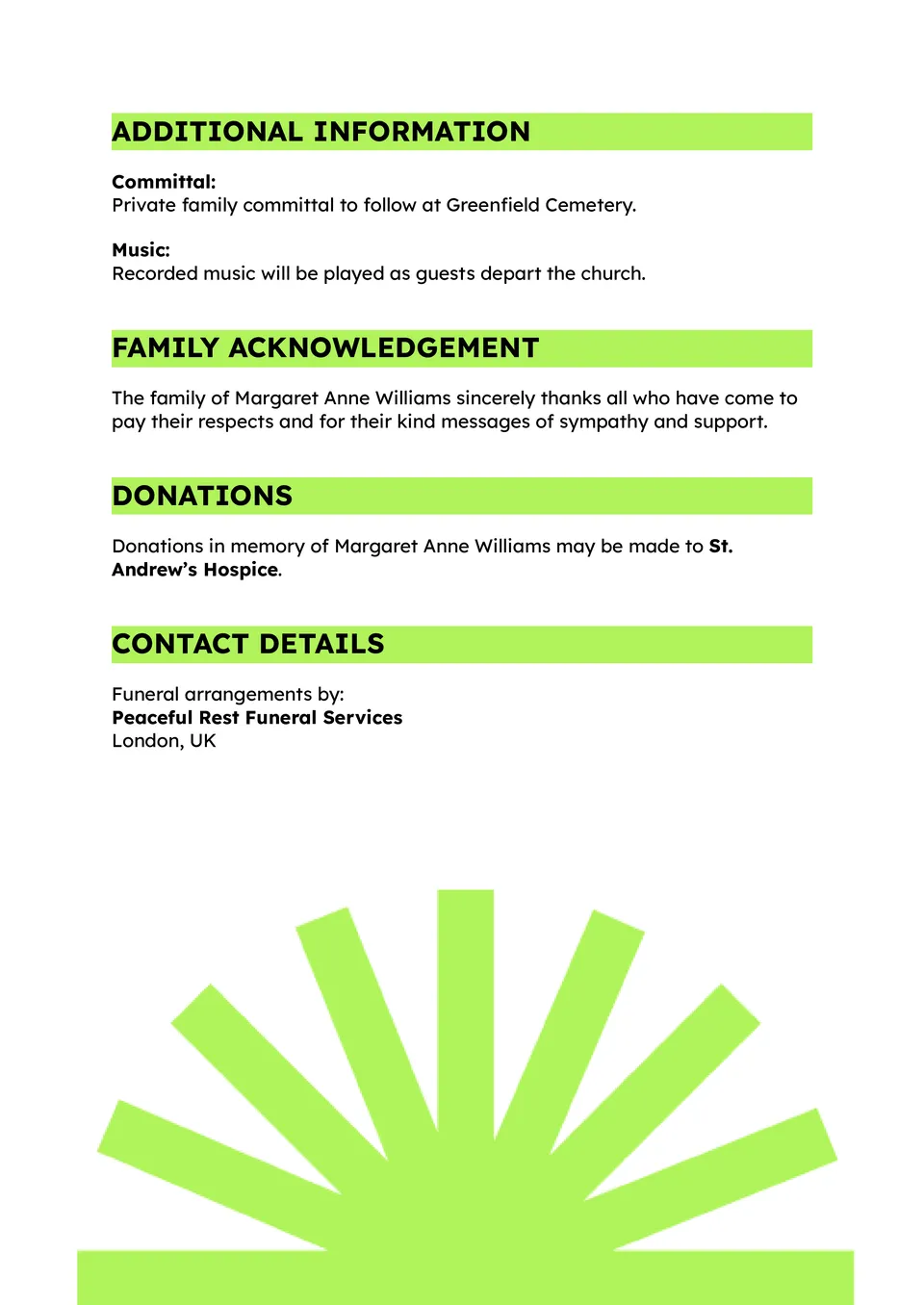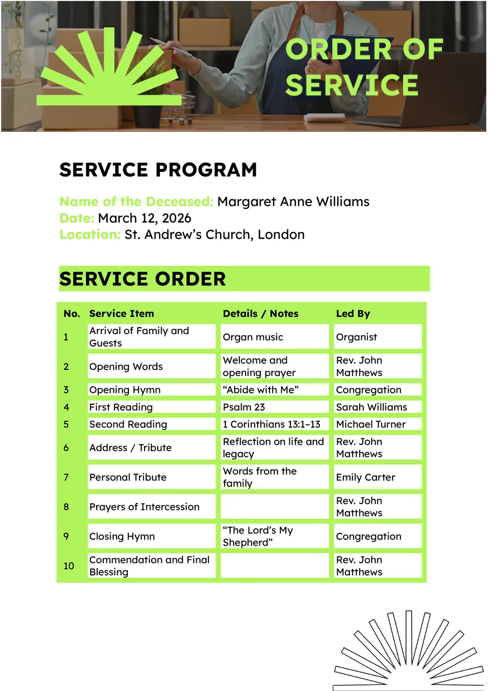 Order Of Service Funeral Template