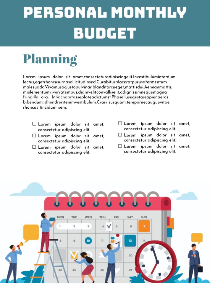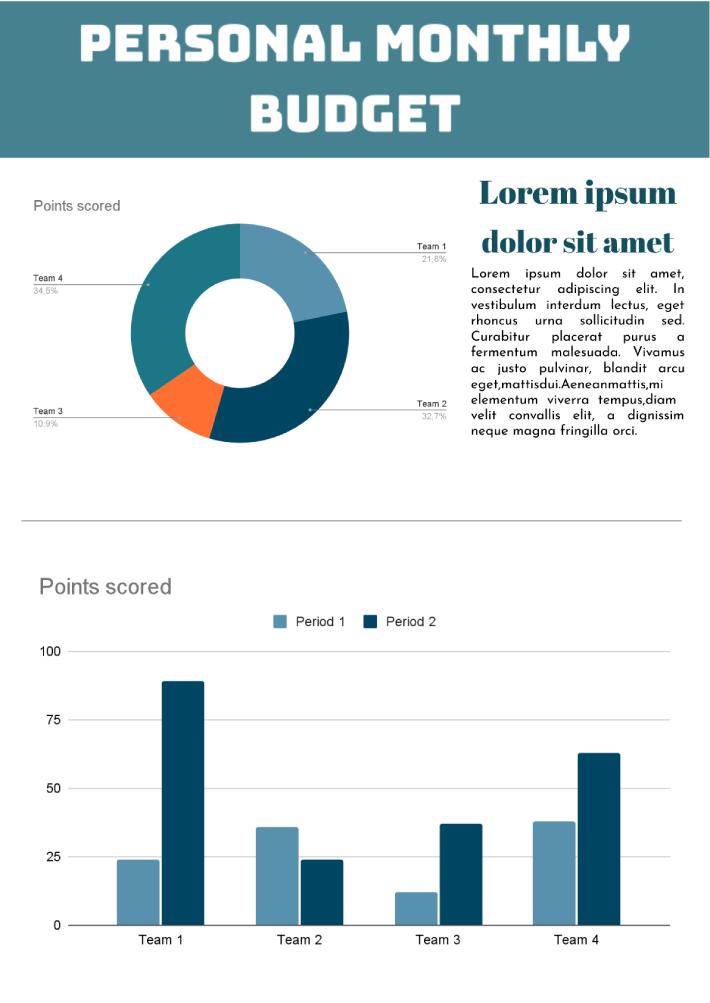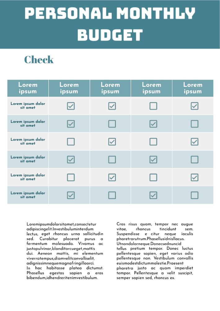 Editable template with colorful diagrams for planning and controlling expenses for the month. You can enter personal financial goals, note and evaluate what has been accomplished. Track your expenses with the Personal Monthly Budget Template, see where your money is going, and what you should give up to achieve your plan. You can print it out for each month, like our other Google Docs Templates.