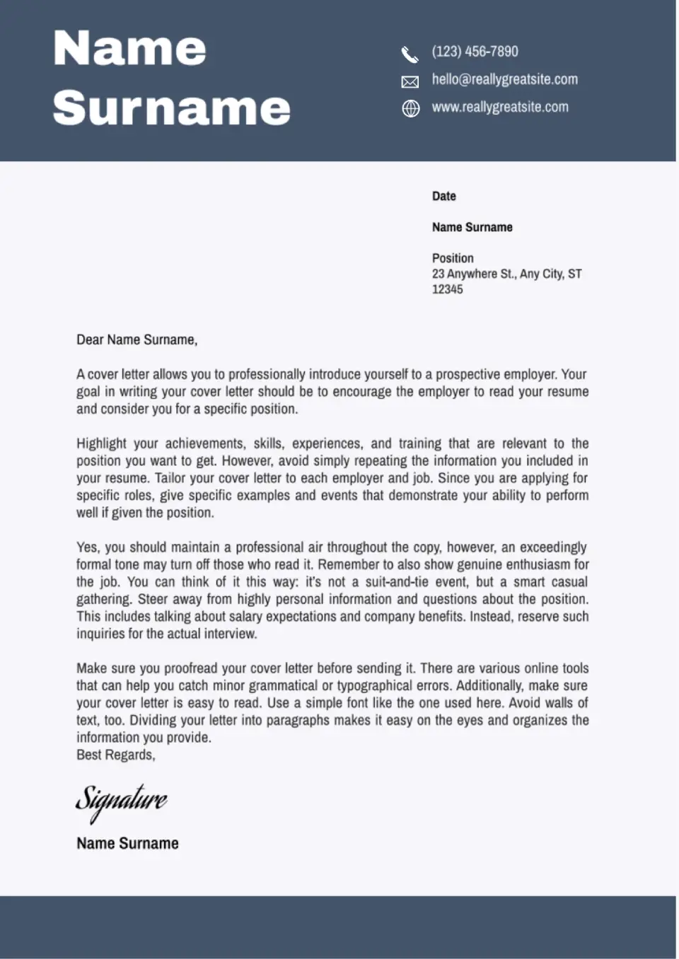 This is one of the best professional cover letter templates as it will suit a job seeker in any field.