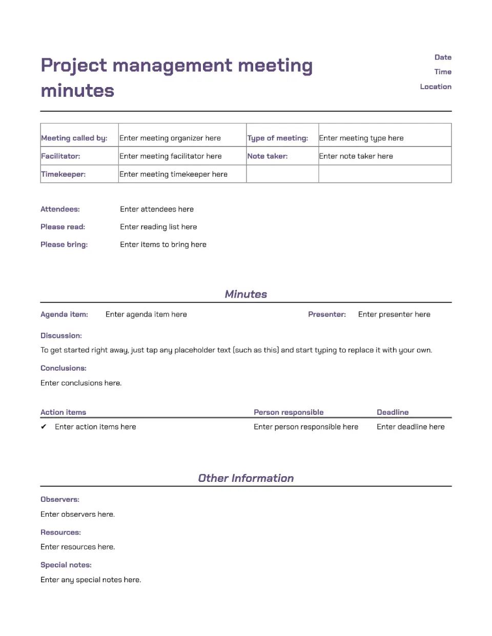 Project Management Meeting Minutes Template
