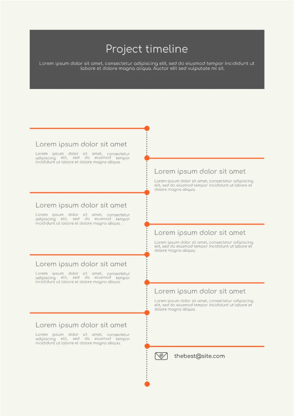 The development of a project, launching a new product or service - all this requires close control. It's very important not to miss any of the stages. Use the Project Timeline Template in Google Docs and indicate all the important stages in chronological order in the layout. Be sure to specify in the template who is responsible for each of the stages and describe the results that need to be achieved.