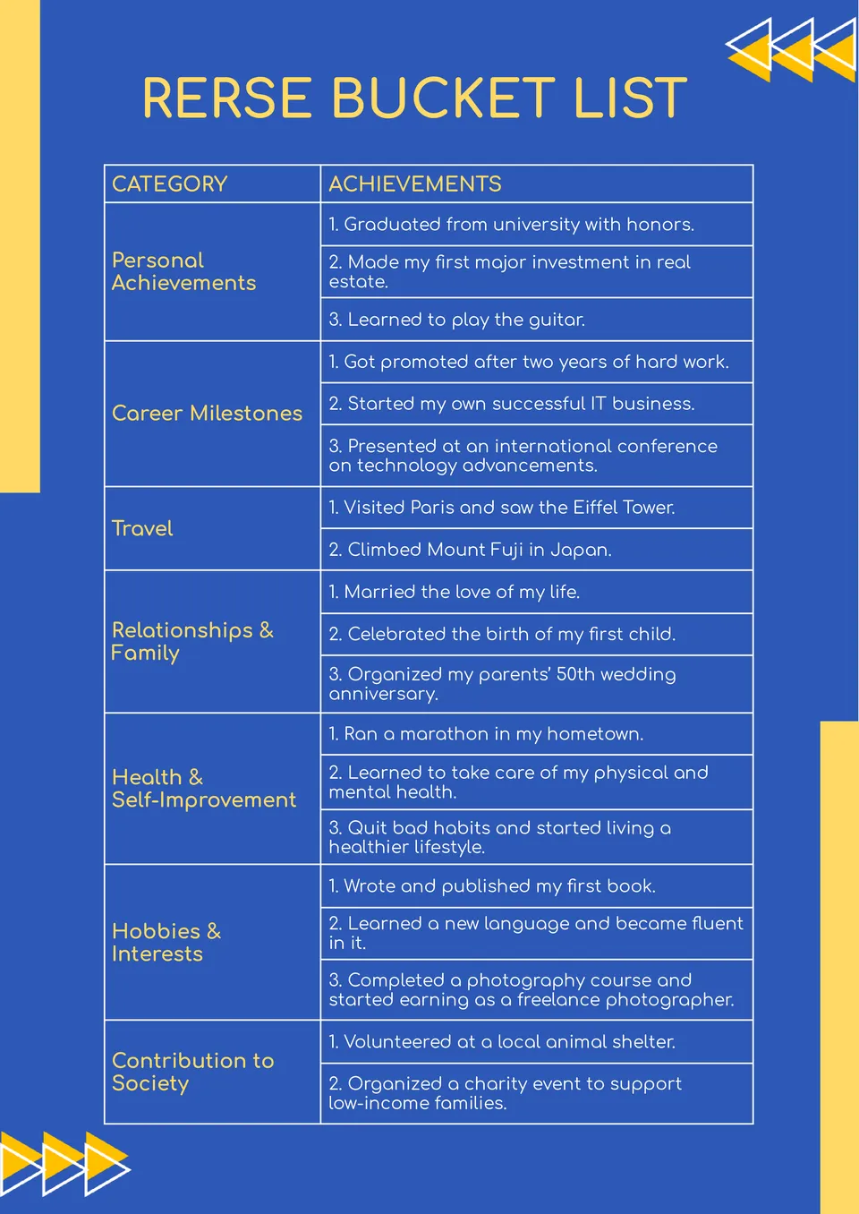 Reverse Bucket List Template