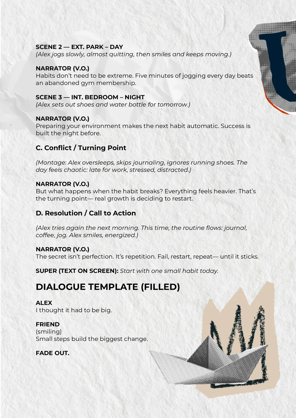Trying to format your screenplay correctly without wasting hours? The Film Script Template provides industry-style layout for scenes, action, and dialogue.