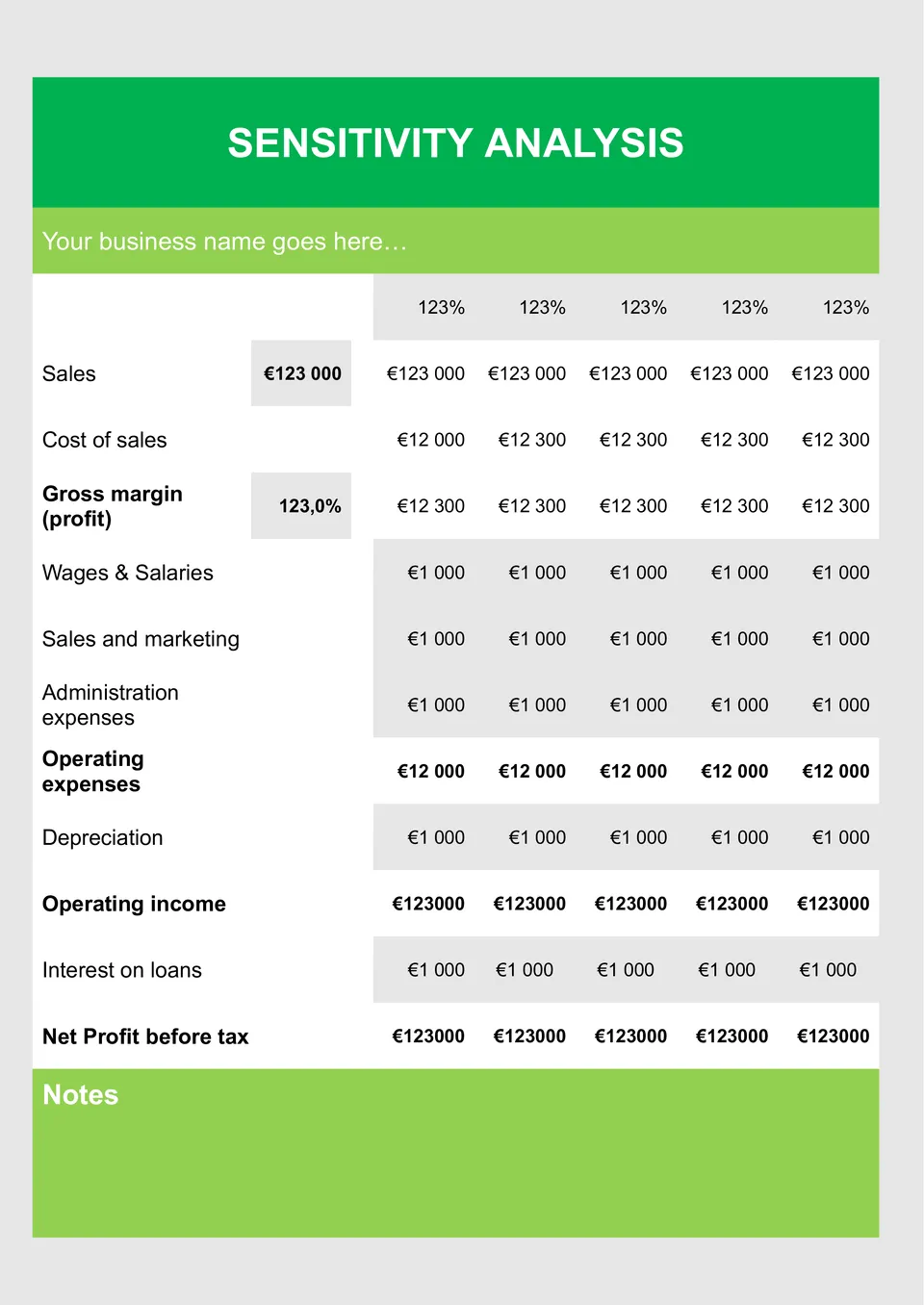 Sensitivity Analysis Template