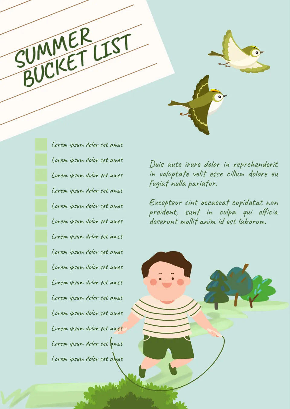 Summer Bucket List Template