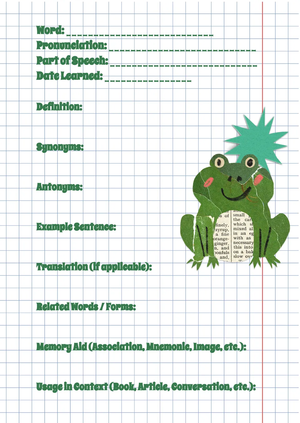 Vocabulary Journal Template