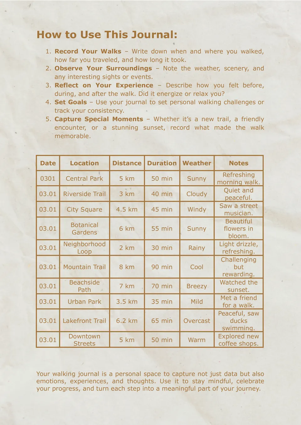 Walking Journal Template