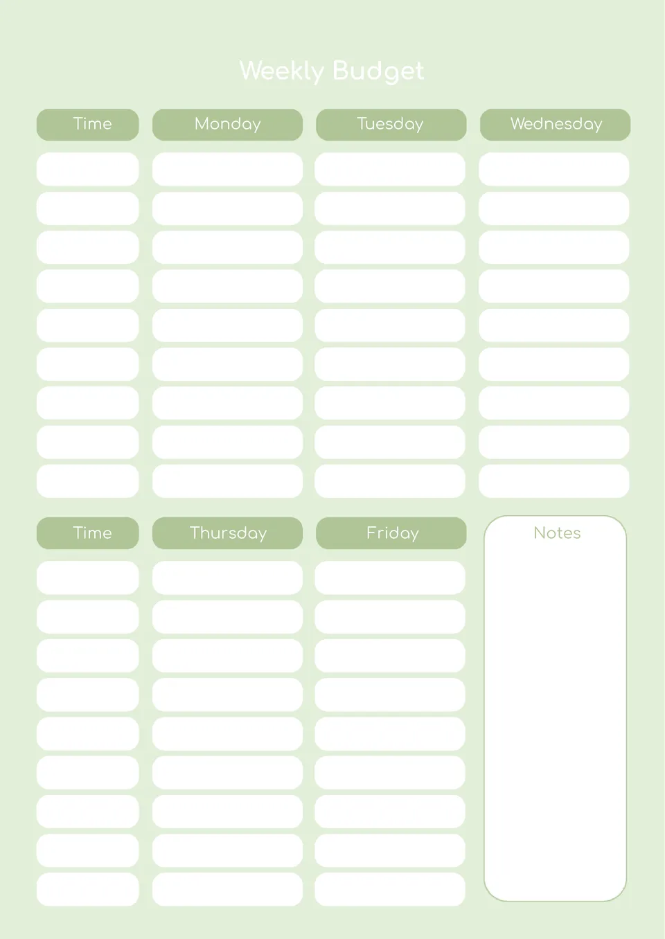 Weekly Budget Template
