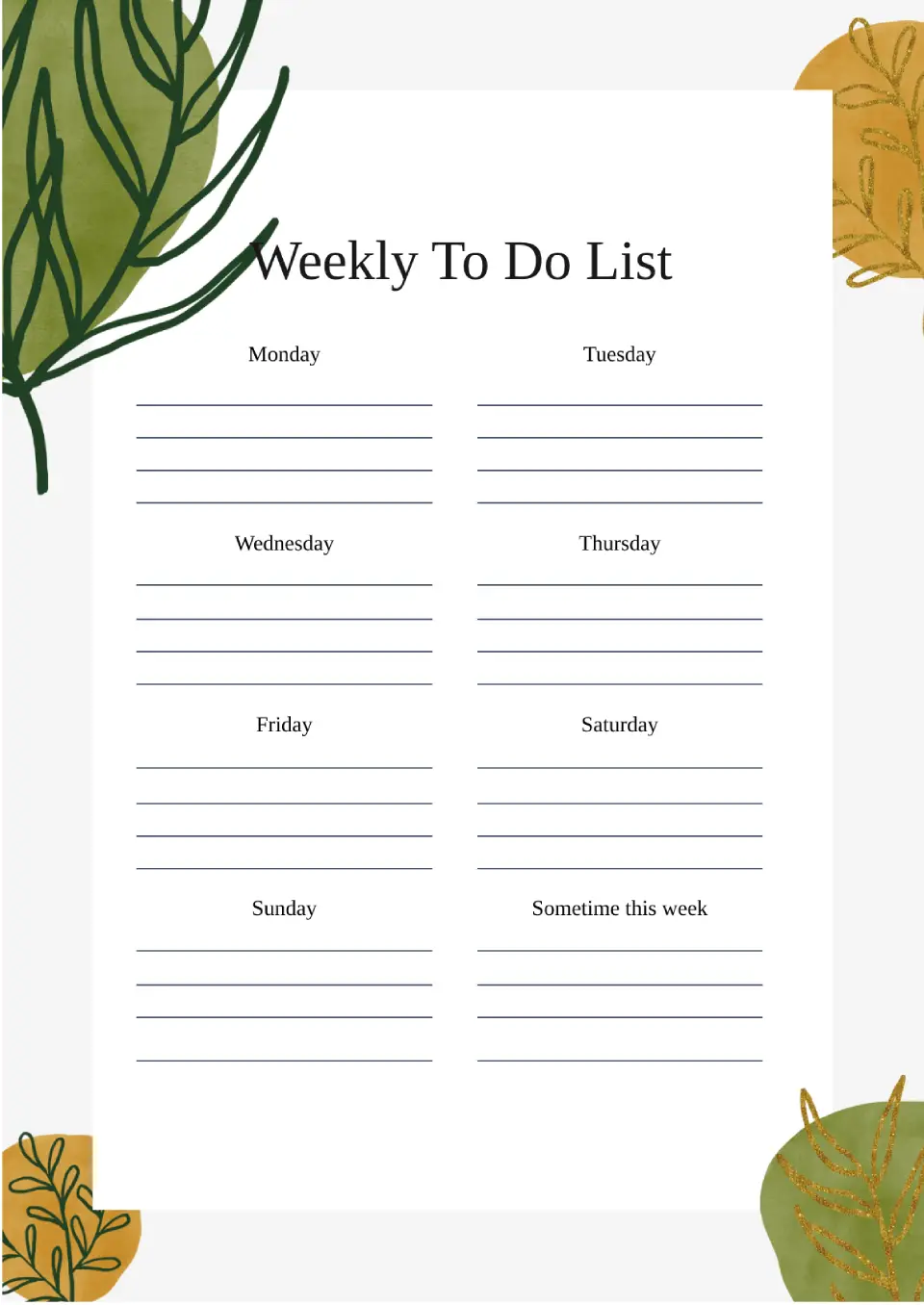 Weekly To Do List Template