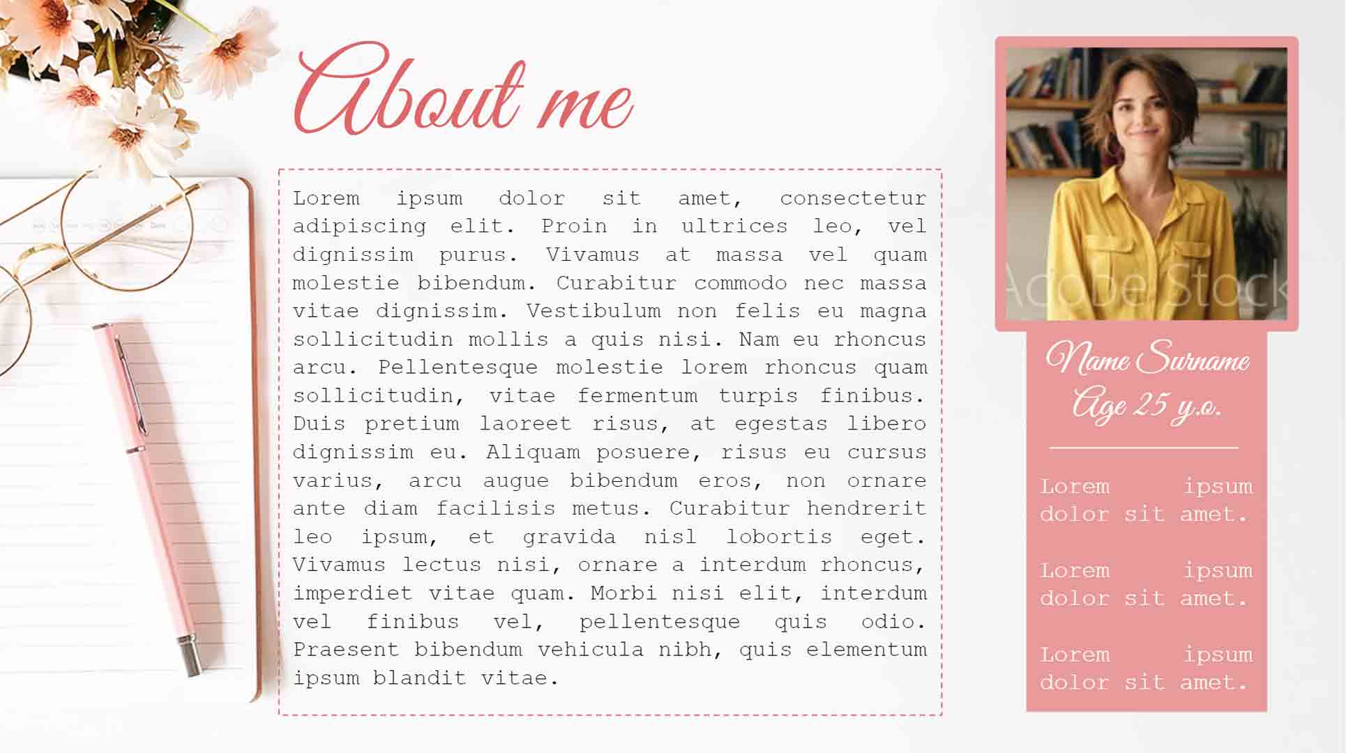 This template is multi-purpose. Regardless of who you are – a graphic designer, illustrator, or a student with zero work experience – you can adapt the art portfolio Google Slides template to suit your tasks and the specifics of your creative activity.