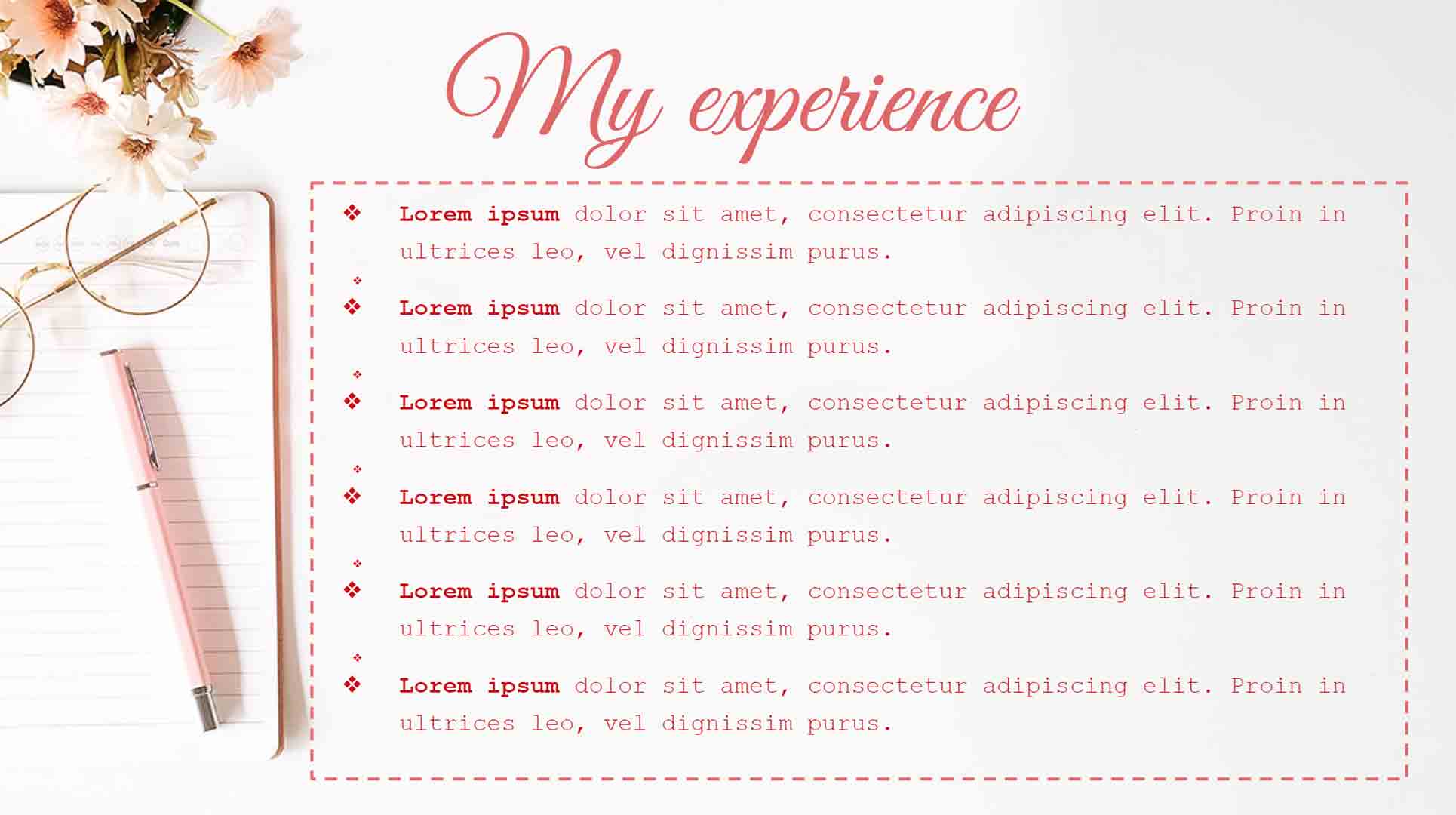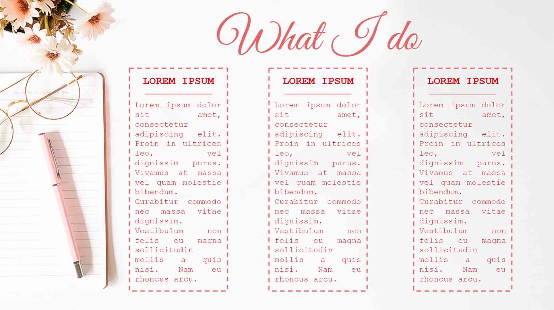 Forget boring portfolios. Time to surprise! Using the designer portfolio Google Slides template, you can showcase your best designs and make a good impression on an employer or client. Show yourself in the best possible light.