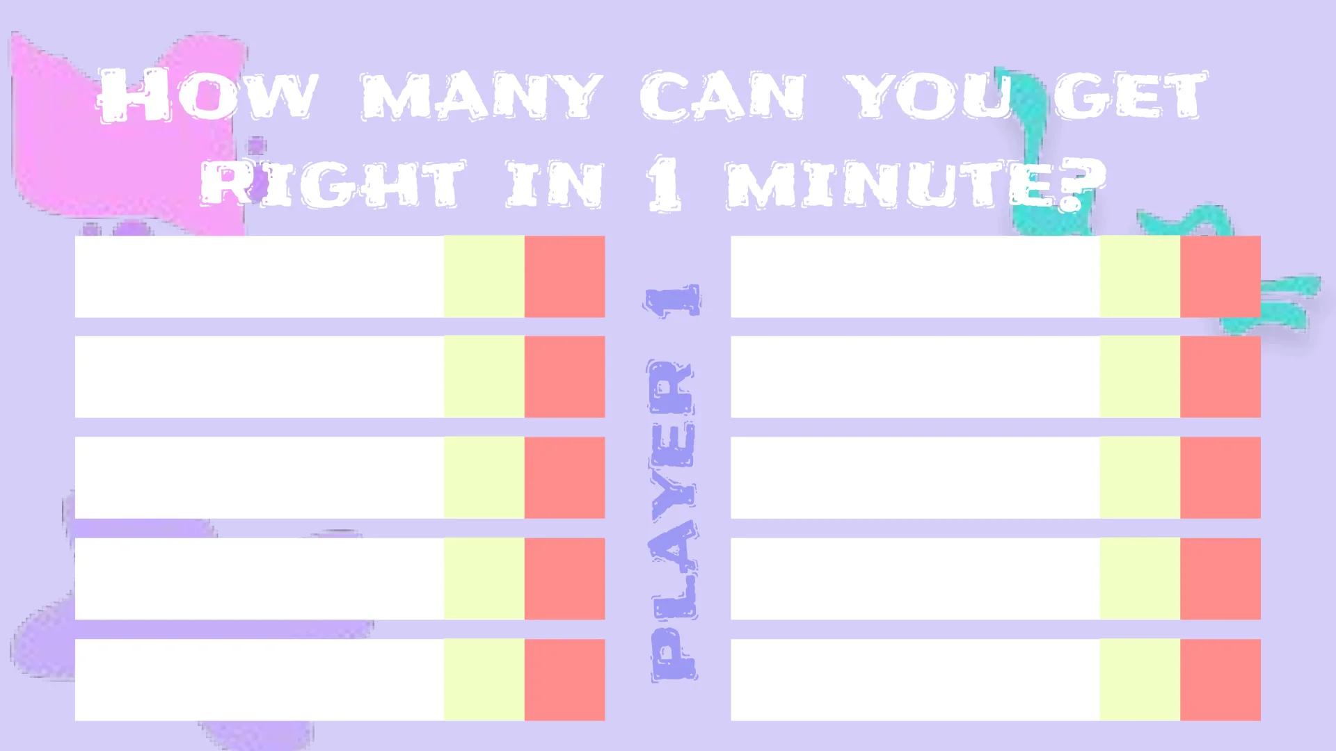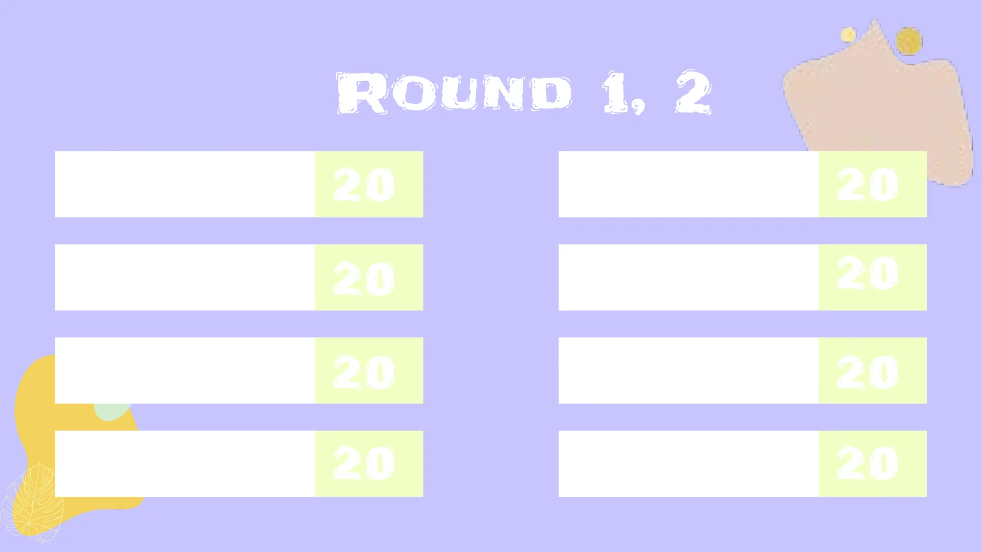 The design of this layout is developed especially for teachers. By means of such a game, you can test the students’ knowledge in any subject: from mathematics to science. Arrange the questions and determine the number of points the student will receive for the correct answer.