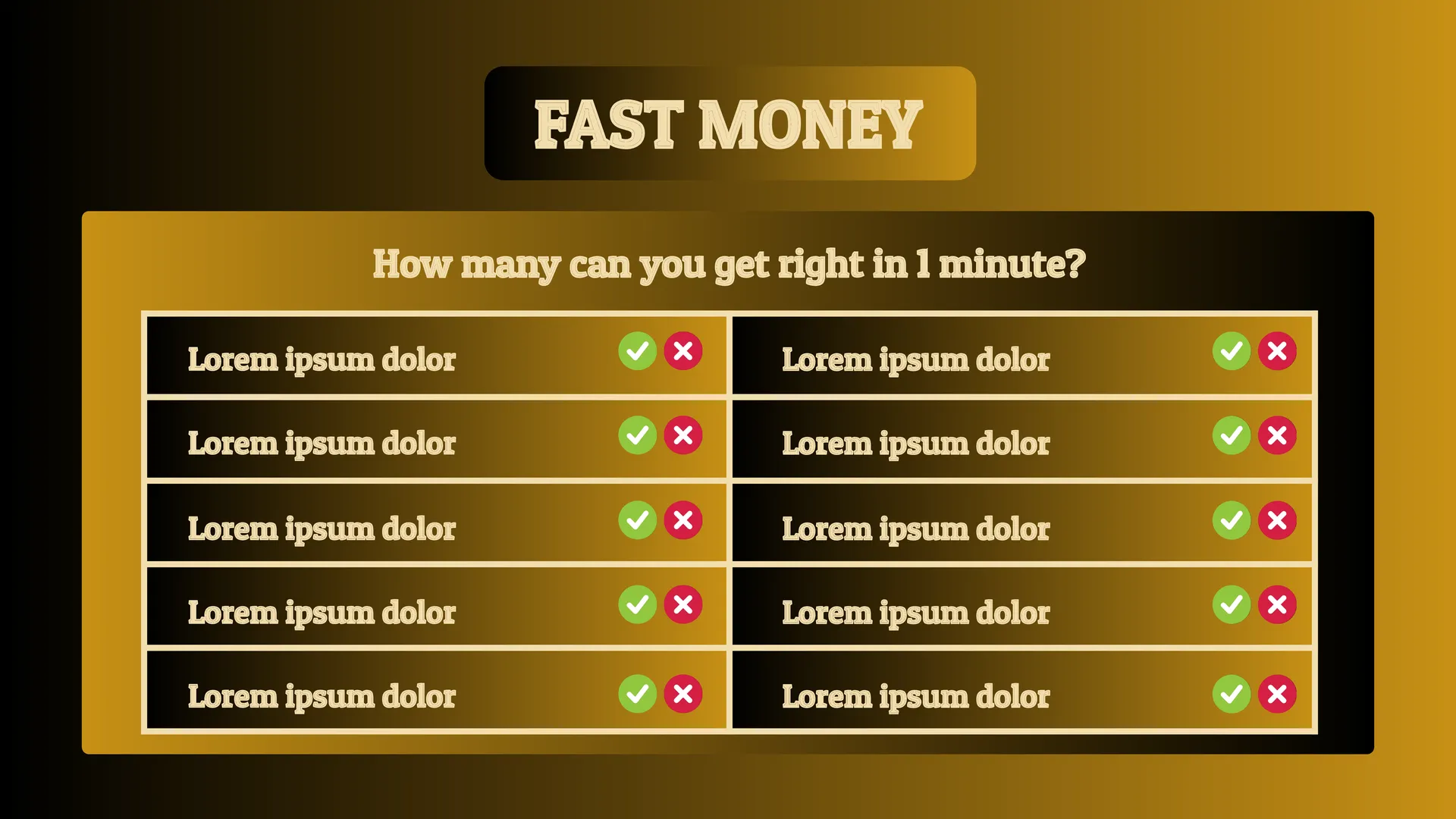 The classic design of this template perfectly captures the atmosphere of your favorite family show. It is designed specifically for answering questions, so it can be combined with other thematic layouts.
