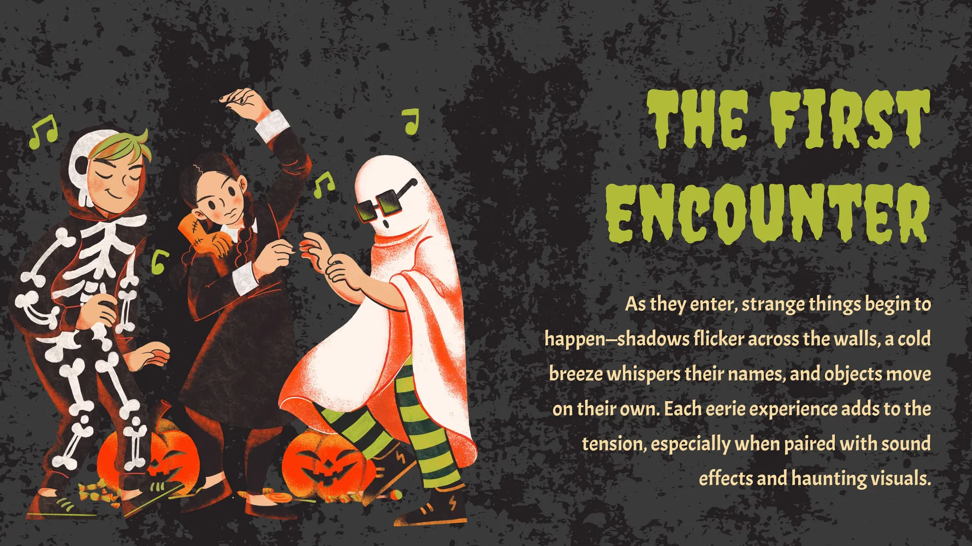 Captivate your audience with a tale of terror using our Halloween Horror Story Template. Designed for storytellers, writers, or presenters, this template provides a haunting backdrop for your narrative. Featuring blood-curdling graphics, suspenseful layouts, and a dark, ominous color palette, it enhances the mood of your horror story. Each slide is crafted to build tension and keep your audience engaged, with ample space for text and images to complement your tale. Whether you're sharing an original story, analyzing horror tropes, or presenting on the genre's history, this template ensures your presentation is both visually striking and thematically cohesive. By utilizing this template, you can deliver a horror story experience that lingers in the minds of your audience.