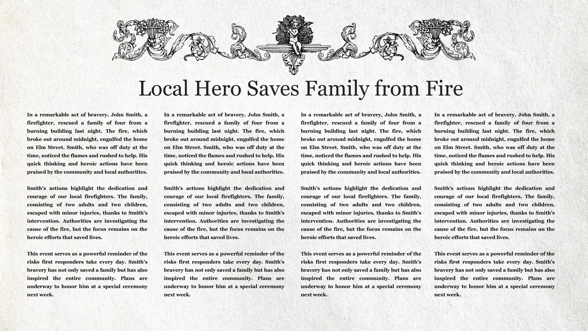Capture a vintage look with the Old Newspaper Template for Google Slides. Perfect for historical presentations, themed events, or creative projects, this template features an authentic old-school newspaper layout. Customize headlines, articles, and visuals to give your presentation a timeless, classic feel. Whether for educational use or a themed party, this template helps you recreate the charm of traditional print media.